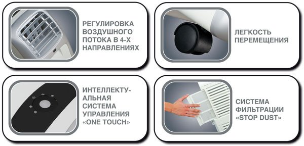 The device's design includes four fan speed options, allowing users to choose the cooling intensity according to their preference.