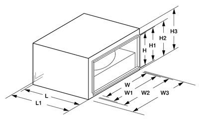 | Модель | W | W1 | W2 | W3 | H | H1 | H2 | H3 | L | L1 |